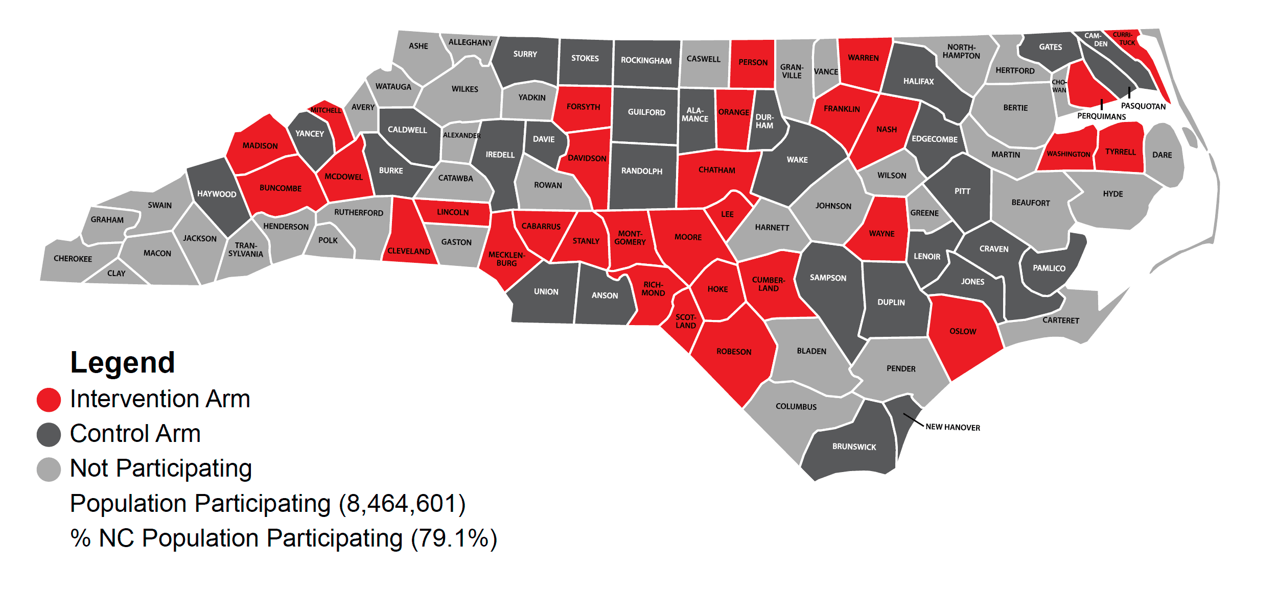 Sixty-two counties in North Carolina are participating in the RACE-CARS Trial. Below you will find county characteristics that help define each participating county: